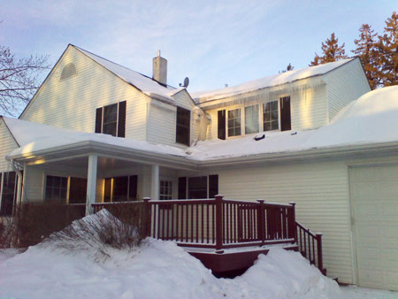 Heat escaping from attic is melting snow off roof